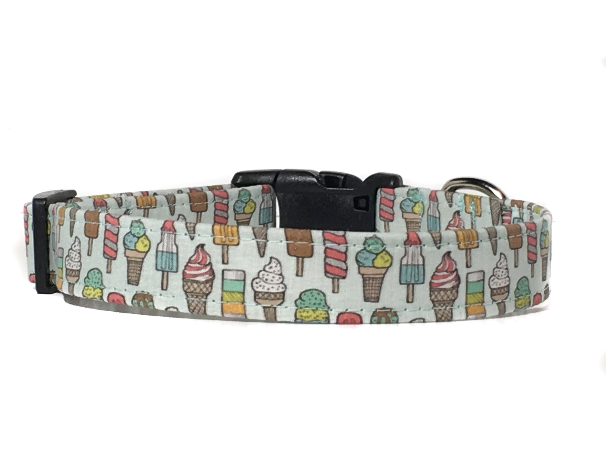 Each collar is made with heavy duty nylon webbing on the inside and covered with a cute cotton fabric print. Triple and box stitched at all stress points for durability.