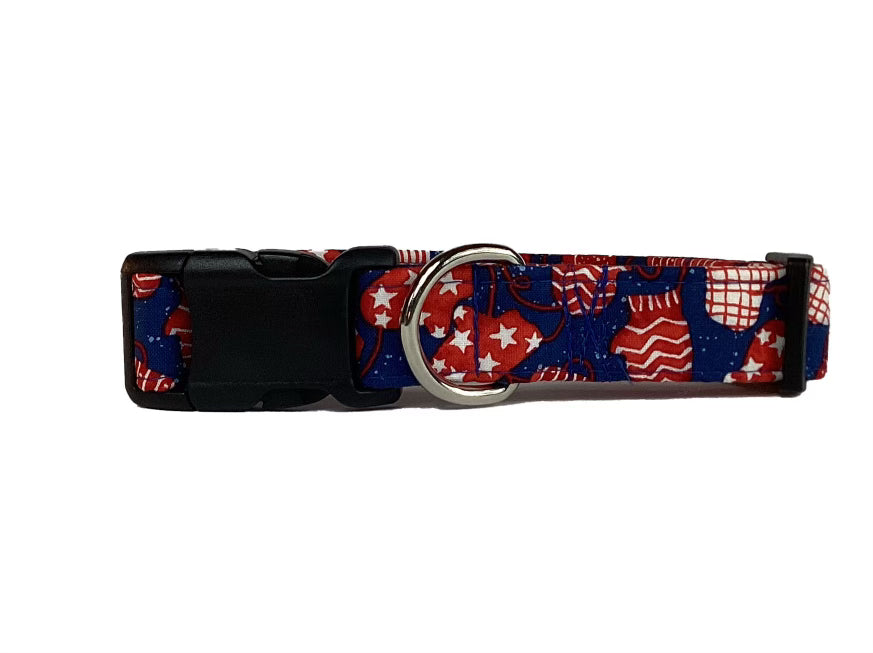 Each collar is made with heavy duty nylon webbing on the inside and covered with a cute cotton fabric print. Triple and box stitched at all stress points for durability.